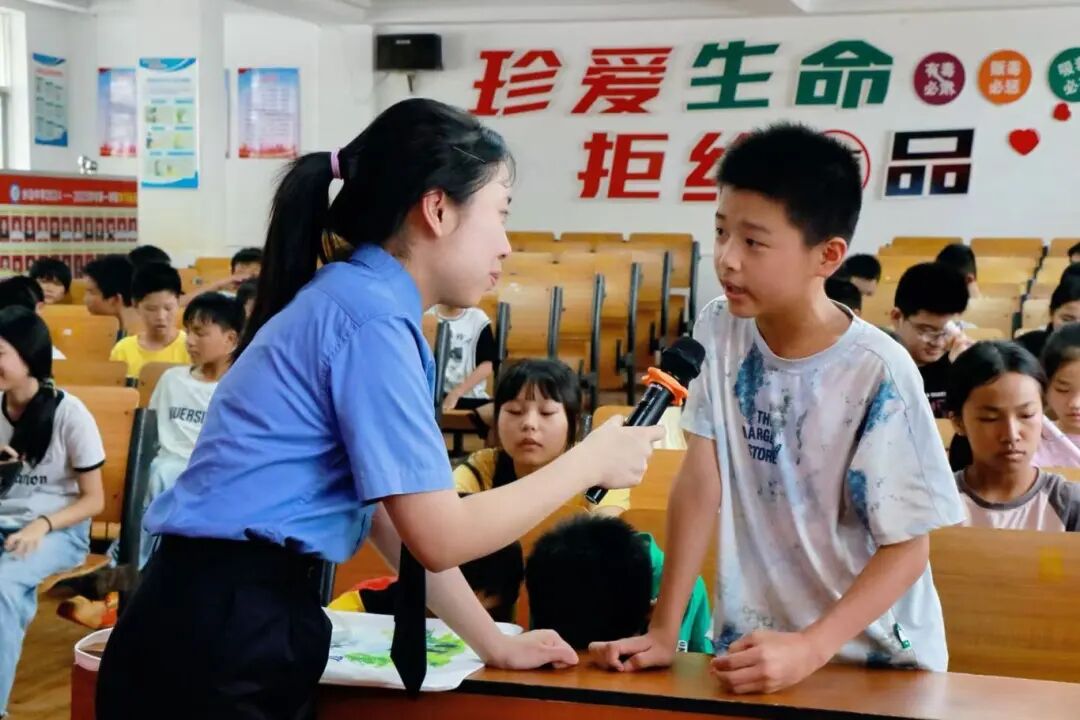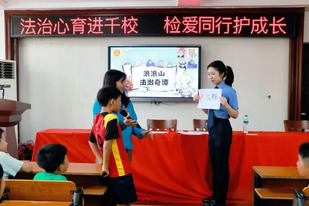 随后,检察干警带来一堂以“浪浪山法治奇潭”为名的法治课,课程以动画电影《浪浪山小妖怪》为“课本”,通过拆解剧情里的法律知识,提出“小妖怪的人身权益保护”“四小妖顶替唐僧师徒4人前去取经的行为构不构成冒名顶替”“浪浪山小妖怪取经前偷吃土地庙贡品可能构成什么犯罪”等问题,而后又引出“规则遵守与自我保护”主题,结合小妖怪“从不欺负弱小”情节类比校园生活,解读《中华人民共和国未成年人保护法》中校园权益保护条款,让同学们明白欺负同学可能触碰法律红线,使抽象的法律条文变得生动易懂。