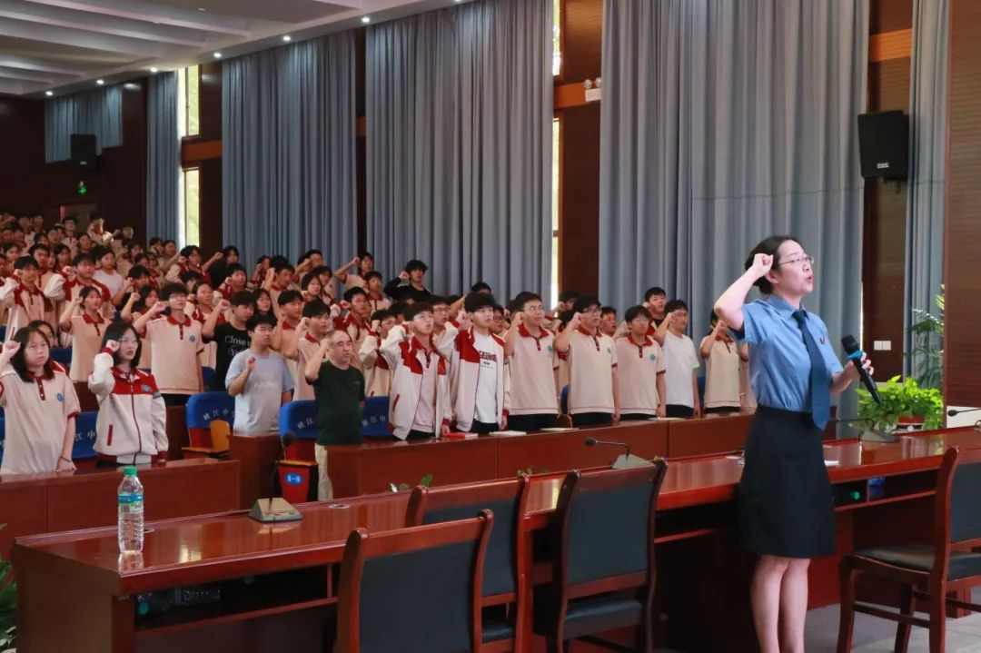 课程在庄严的宪法宣誓中开始。郑检察长以“宪法与我们的一生”为主线,生动阐释了宪法对公民权利的全方位保障,强调其与日常生活的紧密联系。课堂上,同学们通过学习案例,提升了辨别传统与新型毒品的能力及防范意识。