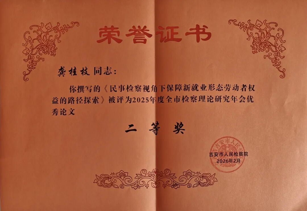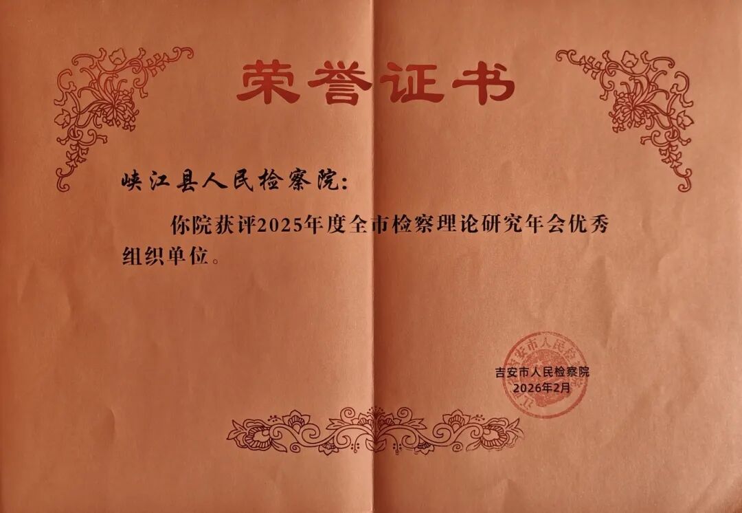 峡江县人民检察院荣获2025年度全市检察理论研究年会优秀组织单位
