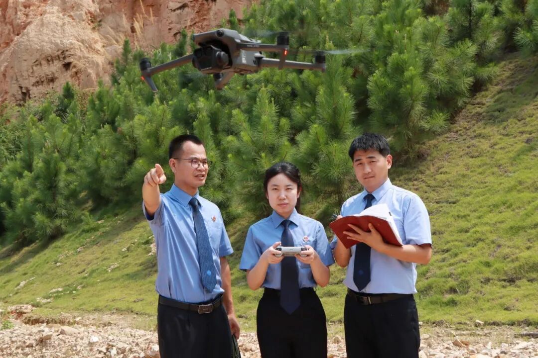 ▲办案回访,用无人机检查矿山修复情况。摄影丨通讯员姚卫东